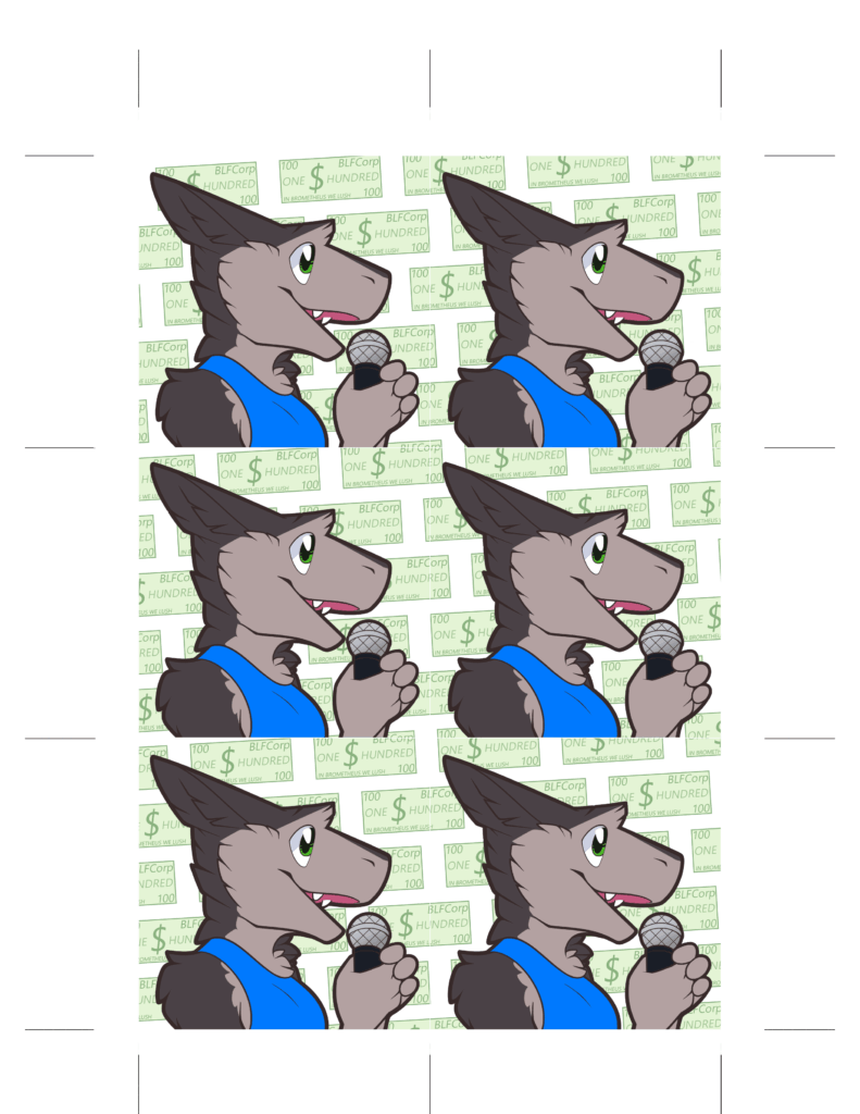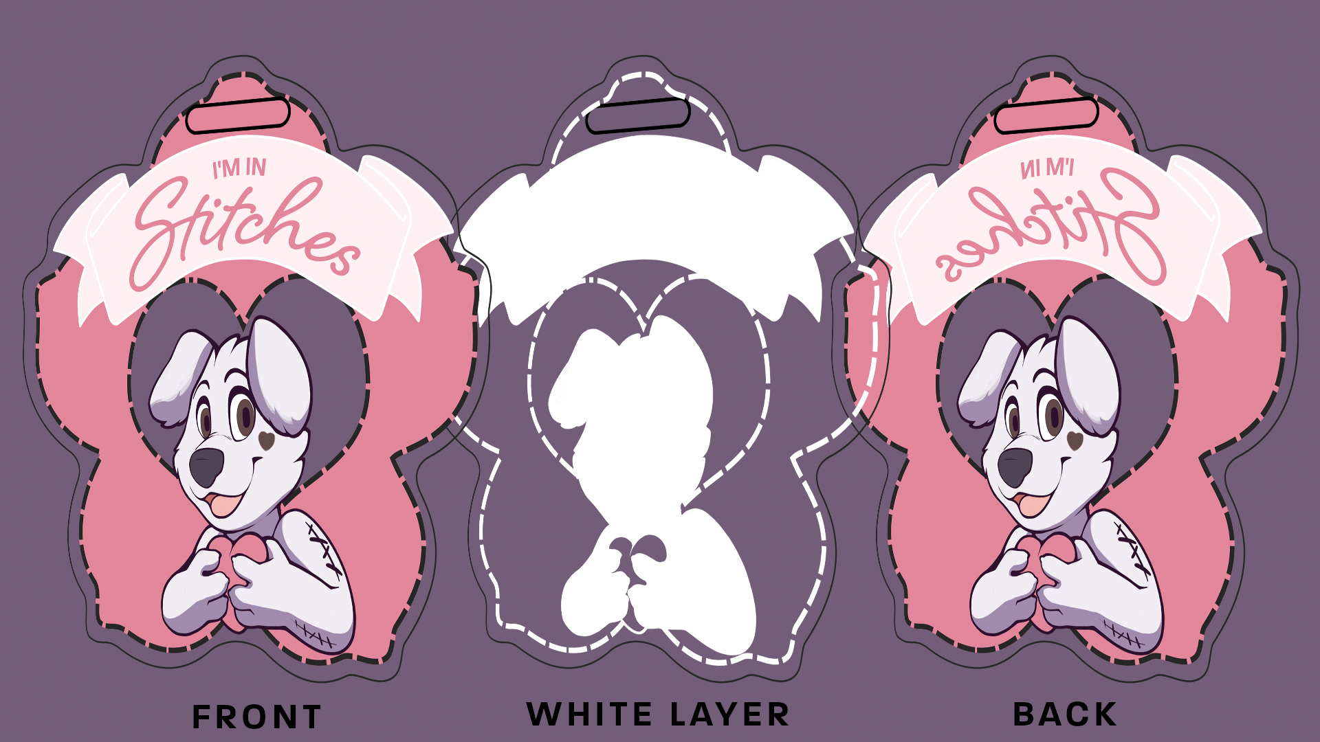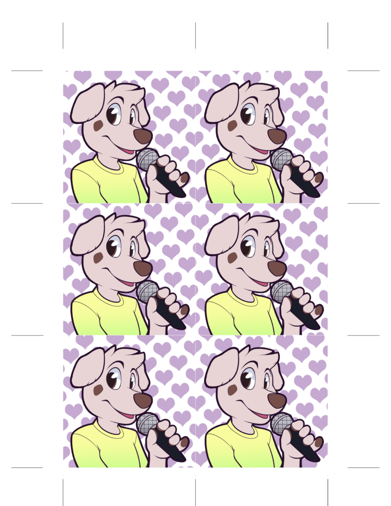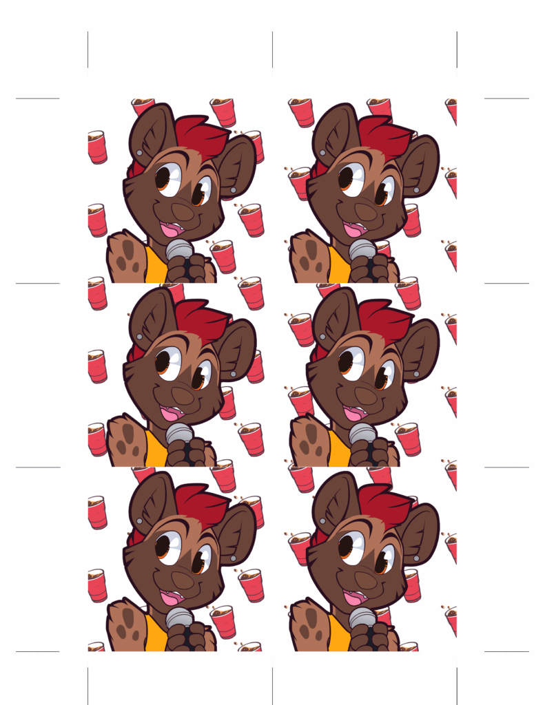 Provided art for acrylic charm fursuit tags. Provided cut lines, front and back art, along with an opaque layer to give the charms a transparency effect.